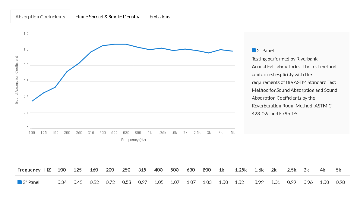 Như với tất cả các tấm Broadway, Accent bắt đầu với bông thủy tinh 6lb mật độ cao để hấp thụ đồng đều ngay xuống đến 200Hz. Tất cả các tấm Accent đều được bao bọc bằng micromesh và các cạnh được làm cứng bằng nhựa để loại bỏ bụi. Sau đó, bảng điều khiển được hoàn thiện bằng một loại vải trong suốt cách âm vừa bền vừa dễ làm sạch. Ba màu trung tính về mặt kiến trúc đã được lựa chọn cẩn thận để hợp nhất với hầu hết các kiểu trang trí trong phòng. Và giống như phần còn lại của loạt sản phẩm này, các tấm Accent được kiểm tra Class-A để đáp ứng tiêu chuẩn ASTM E 84 và mật độ lan truyền ngọn lửa và khói Can / UL S102 để sử dụng an toàn ở mọi nơi.
