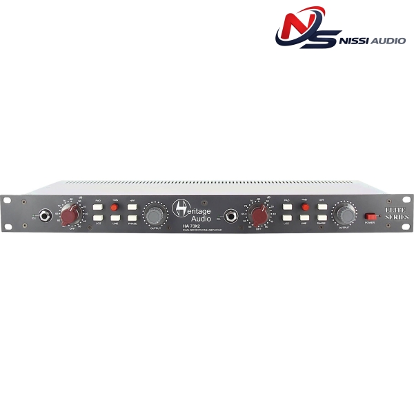 HA73X2 Elite có tính năng khuếch đại, cắt đầu ra, đệm -20db, đảo cực, bộ lọc thông cao và nguồn ảo +48v. Nó được đặt trong khung thép 1RU chắc chắn của Anh và sử dụng nguồn điện bên ngoài để vận hành có độ ồn thấp. HA73 có bộ biến áp đầu vào và đầu ra Carnhill, nồi và công tắc chất lượng cao và hơn hết là được sản xuất 100% bởi Heritage Audio.